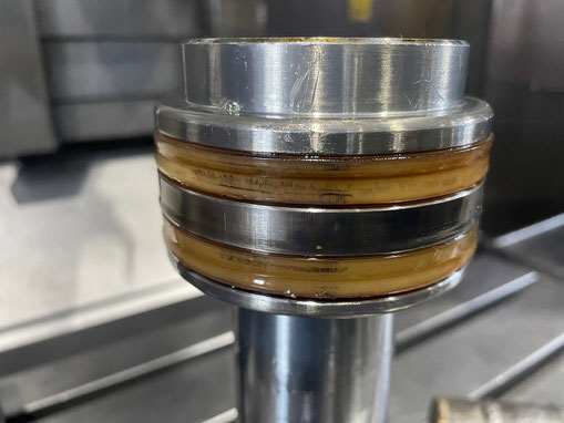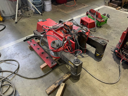 まずは上部に構造物がある前後サポートシリンダーから消耗品の交換を開始。